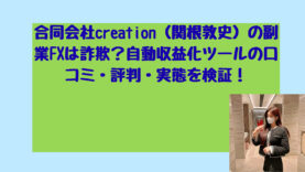 投資合同会社creation(関根敦史)の副業FXは詐欺?自動収益化ツールの口コミ・評判・実態を検証! こんにちは!長野芽衣です! 最近、副業や投資に興味を持つ方々の間で、合同会社creation(代表:関根敦史氏)が提供するFX自動収益化ツールが話題になっています。 しかし、インターネット上では「本当に稼げるのか」「詐欺ではないのか」と... 2026.02.08投資