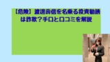 副業×投資は最初から疑われやすい土俵に立ってしまいます