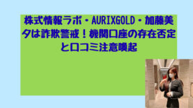 投資株式情報ラボ・AURIXGOLD・加藤美夕は詐欺警戒!機関口座の存在否定と口コミ注意喚起 こんにちは!長野芽衣です! 株式情報ラボやAURIXGOLD、加藤美夕という名前を使った投資案件について、詐欺的な要素が多数報告されており、極めて危険な案件として注意が必要です。 特に「機関口座」という実在しない架空の仕組みを謳い、投資... 2025.11.20投資
