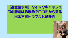 投資【返金請求可能】QuickCashFXの口コミ評判は詐欺?FX仮想通貨投資で出金できない事例あり こんにちは!長野芽衣です! 近年、QuickCashFXという投資プラットフォームを巡って、多くの投資家から深刻な被害報告が相次いでいます。 特にFXや仮想通貨投資を謳った勧誘により、多額の資金を預けた投資家が出金できずに困窮するケース... 2025.09.18投資