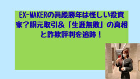 投資SPARK EX・宮野利恵・大石伊織の手口が危ない?ハイロー投資では稼げない詐欺被害の口コミも! こんにちは!長野芽衣です! SPARK EX・宮野利恵・大石伊織といった名前が絡む「副業×投資」は危ないのかを疑ってしまう理由があります。 ネット上では「稼げる」「簡単」といった甘い言葉が先行しがちですが、そうした空気感自体が警戒ポイン... 2026.02.25投資