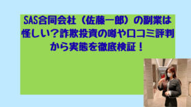 投資SAS合同会社(佐藤一郎)の副業は怪しい?詐欺投資の噂や口コミ評判から実態を徹底検証! こんにちは!長野芽衣です! 副業や投資への関心が社会全体で高まり続ける中、怪しい事業者によるトラブルが後を絶たない状況が続いています。 SAS合同会社および佐藤一郎氏が関与しているとされる副業・投資サービスについて、詐欺の噂や被害を訴え... 2026.03.31投資