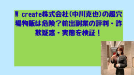 投資W create株式会社(中川克也)の超穴場物販は危険?輸出副業の評判・詐欺疑惑・実態を検証! こんにちは!長野芽衣です! W create株式会社が提供する「超穴場物販」という輸出ビジネスについて、インターネット上では詐欺疑惑や危険性を指摘する声が多数上がっています。 中川克也氏が代表を務めるとされるこの副業案件ですが、実際の内... 2026.01.03投資