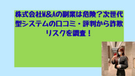 投資株式会社M&Aの副業は危険?次世代型システムの口コミ・評判から詐欺リスクを調査! こんにちは!長野芽衣です! 株式会社M&Aの副業について調べると、必ずと言っていいほど目に入るのが「次世代型システム」という表現です。 一見すると、最新技術を使った効率的な副業や投資のように感じられます。 しかし、副業や投資の分野では... 2025.12.18投資
