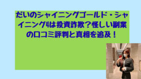 投資だいのシャイニングゴールド・シャイニング4は投資詐欺?怪しい副業の口コミ評判と真相を追及! こんにちは!長野芽衣です! 「だいのシャイニングゴールド」「シャイニング4」は、副業や投資案件として紹介されることがある一方で、内容が不透明で不安を感じる方が多い印象です。 結論から申し上げますと、現時点で外部から客観的に安全性を断定で... 2026.02.04投資