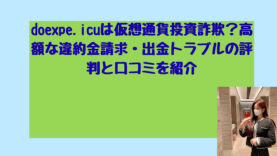 投資doexpe.icuは仮想通貨投資詐欺?高額な違約金請求・出金トラブルの評判と口コミを紹介 こんにちは!長野芽衣です! doexpe.icuについて徹底的な調査を行った結果、このサイトが仮想通貨投資を装った極めて悪質なサイトであることが強く疑われる状況が判明しています。 特に深刻な問題として、利用者から高額な違約金を請求するケ... 2025.09.16投資