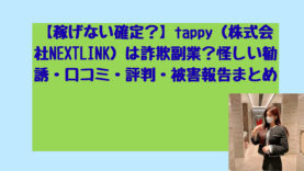副業【稼げない確定?】tappy(株式会社NEXTLINK)は詐欺副業?怪しい勧誘・口コミ・評判・被害報告まとめ tappy(株式会社NEXTLINK)の副業は本当に稼げるのか?怪しい勧誘手口や実際の口コミ・評判、被害報告を徹底調査。詐欺の可能性や危険性について解説します。 2026.04.07副業