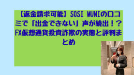 投資【返金請求可能】SOSI MUNIの口コミで「出金できない」声が続出!?FX仮想通貨投資詐欺の実態と評判まとめ こんにちは!長野芽衣です! SOSI MUNIという名前を聞いて、興味を持たれた方も多いのではないでしょうか。 このサービスは、FXや仮想通貨の投資プラットフォームとして広告されていますが、実際の利用者からは深刻な問題が数多く報告されて... 2025.12.05投資