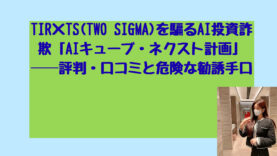 投資TIR×TS(TWO SIGMA)を騙るAI投資詐欺「AIキューブ・ネクスト計画」──評判・口コミと危険な勧誘手口 こんにちは!長野芽衣です! 現在、インターネット上で横行している「TIR×TS(TWO SIGMA)」を騙るAI投資詐欺「AIキューブ・ネクスト計画」は、投資家の信頼を根底から破壊する極めて悪質な犯罪行為です。 この詐欺は、実在する米国... 2025.10.08投資